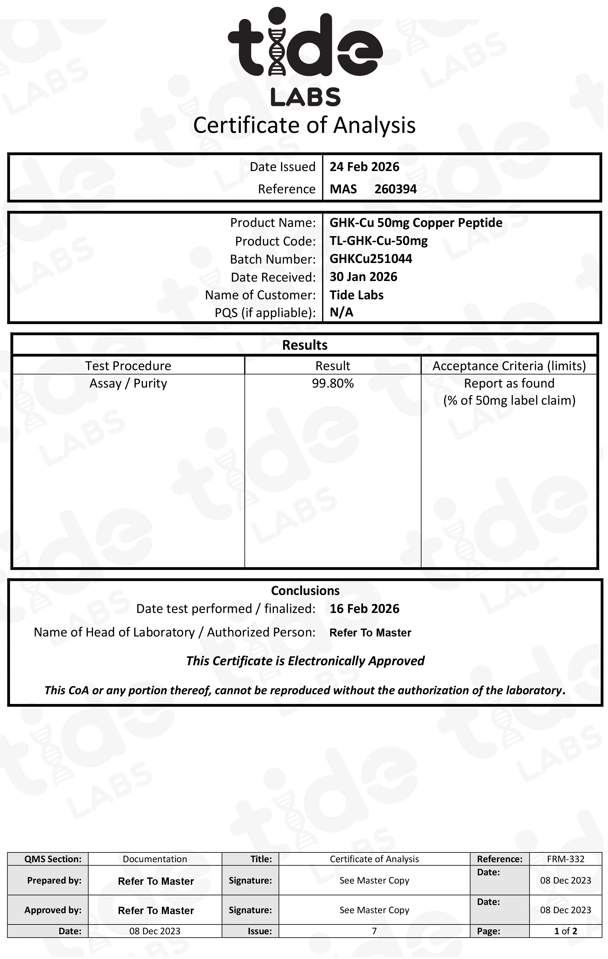 Update: Currently due to stock shortages GHK-Cu is limited to 2 per order. We apologise for this. Normal order will resume next week.
