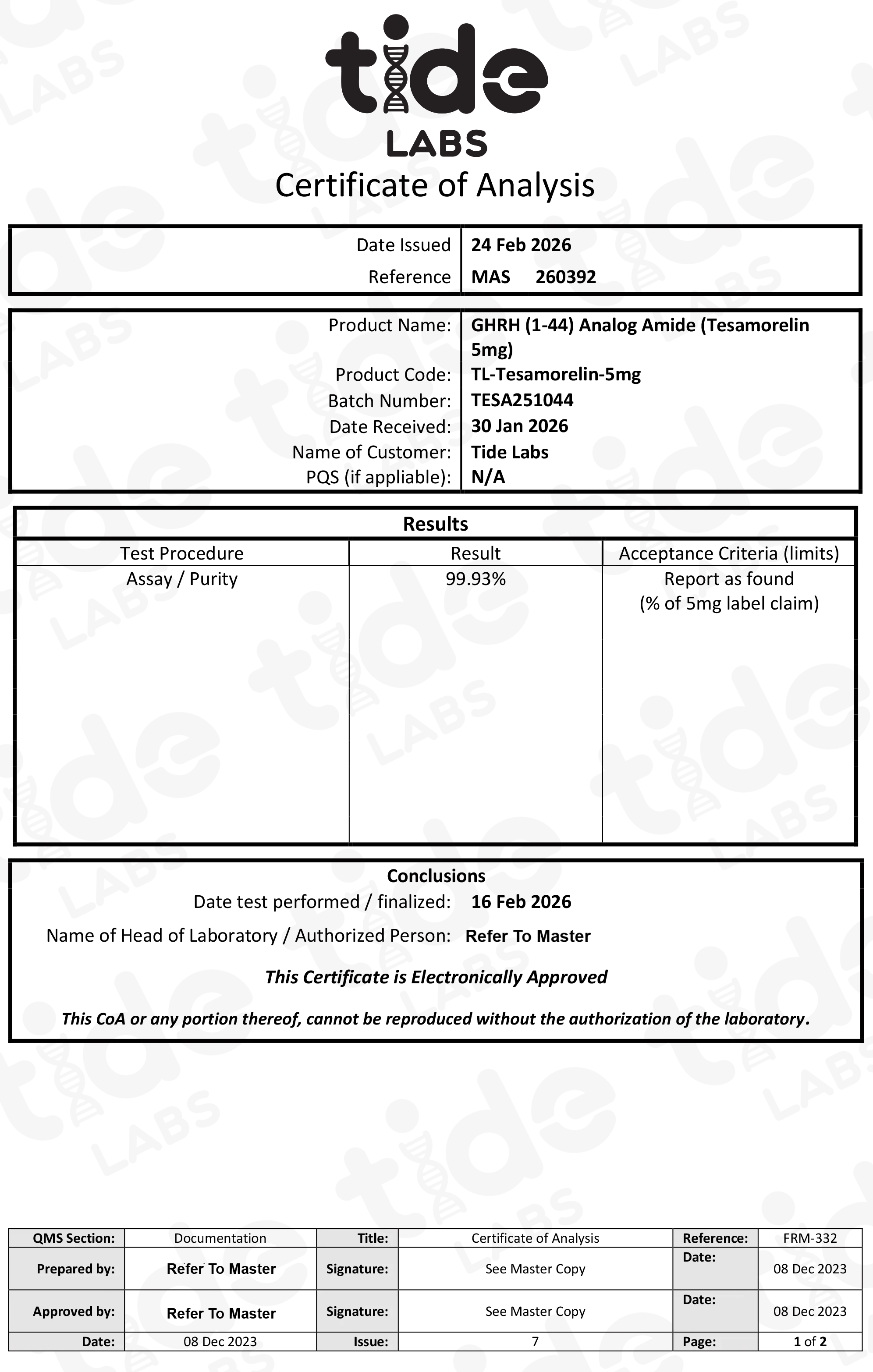 Certificate of Analysis (COA): See Images