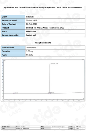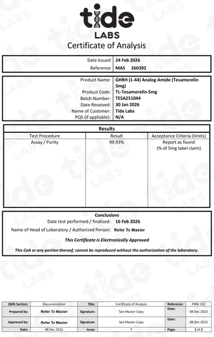 Tesamorelin is a synthetic peptide analogue of growth hormone–releasing hormone (GHRH). It has been of strong interest in laboratory research for its ability to stimulate growth hormone release and impact metabolic pathways. Preclinical and clinical research studies have highlighted Tesamorelin’s potential roles in body composition, lipid metabolism, and age-related endocrine investigations. While not approved for research outside specific regulated uses, Tesamorelin continues to attract attention as an exciting peptide in metabolic and endocrine-focused research.