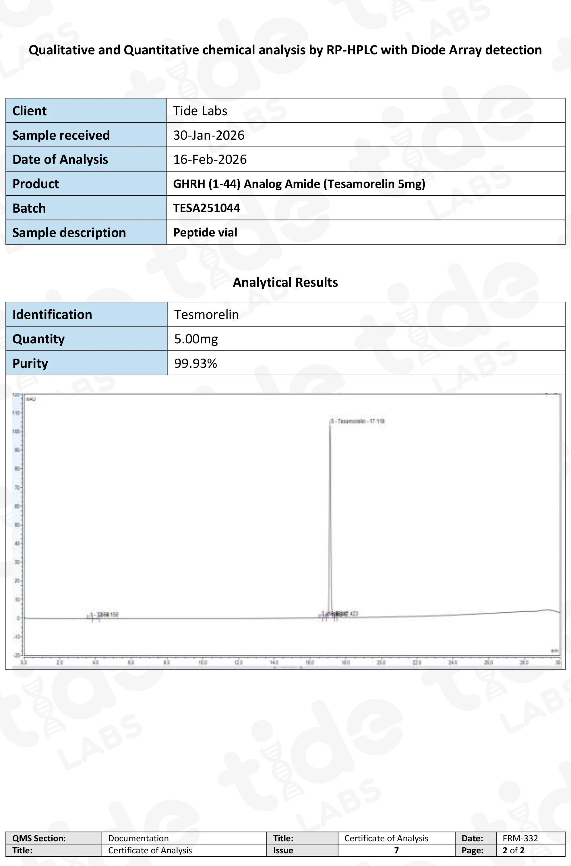 • Chemical Name: Tesamorelin acetate